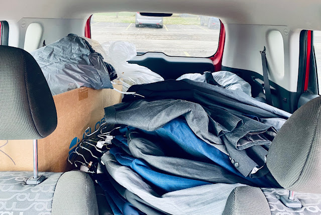 On Friday, March 8, 2024, with help from the wonderful Kristy Mullins and Tonya Gephard, Lisa was able to pick up the remaining men's professional clothing items from the Veteran Housing Program in Chillicothe. They had received a large donation of brand new suits from Men’s Wearhouse, and weren’t able to distribute the smaller sizes so they donated them to us for foster youth.